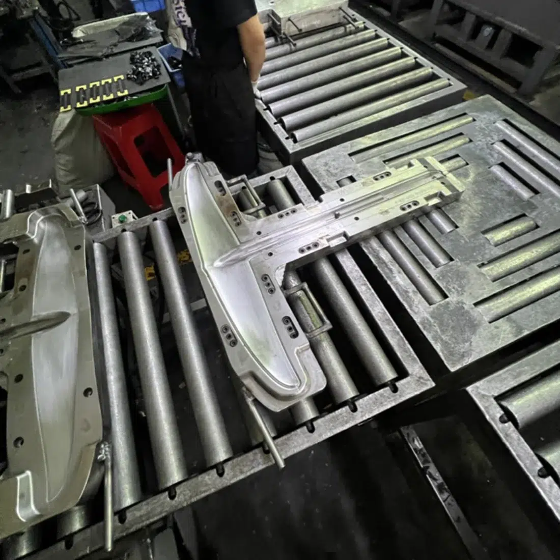 Once the various materials are cut and stacked, they're laid out in the molds. These molds, constructed of sturdy steel, endure significant force from hydraulic presses and heat during the foil manufacturing process.
